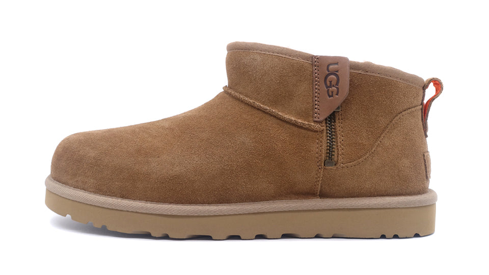 南カリフォルニアを拠点とするグローバルライフスタイルブランド<UGG®(アグ)>発、元々はサーファーたちの足をあたかかく保つために作られた定番ブーツを機能的なサイドジッパーでより装飾的にアップデートしたクラシック ウルトラ ミニ ジップ。